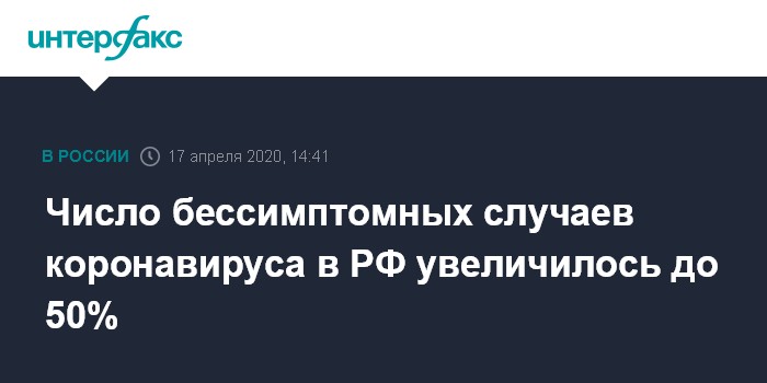 "Если еще две недели в удельном весе от числа всех инфицированных количество людей без симптомов, у которых обнаружен вирус, составляло 10-12%, максимум 20%. За последние дни удельный вес таких людей составляет от 45 до 50%", - сказала Попова на брифинге в Москве в пятницу.
