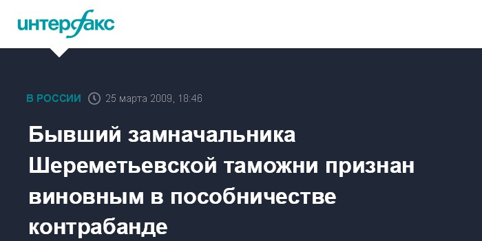 Бывший замначальника Шереметьевской таможни признан виновным в пособничестве контрабанде