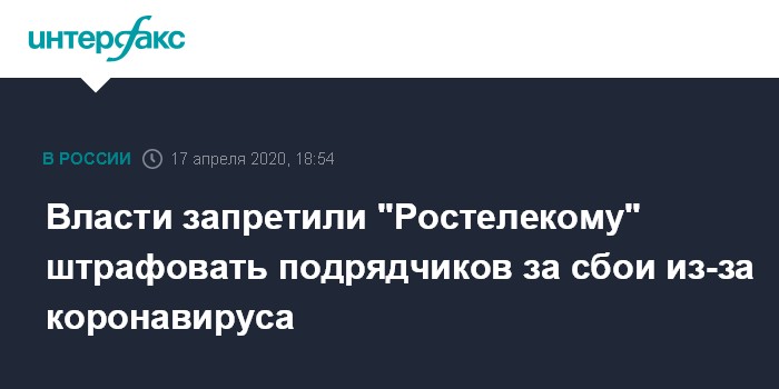 Власти запретили "Ростелекому" штрафовать подрядчиков за сбои из-за коронавируса