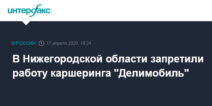 Москва. 17 апреля. INTERFAX.RU - В Нижегородской области Минтранс аннулировал разрешение компании "Делимобиль" работать в регионе в условиях повышенной готовности, сообщила пресс-служба губернатора и правительства области. Проверка офиса компании выявила нарушения: отсутствие масок, средств дезинфекции и разметки на полу.
