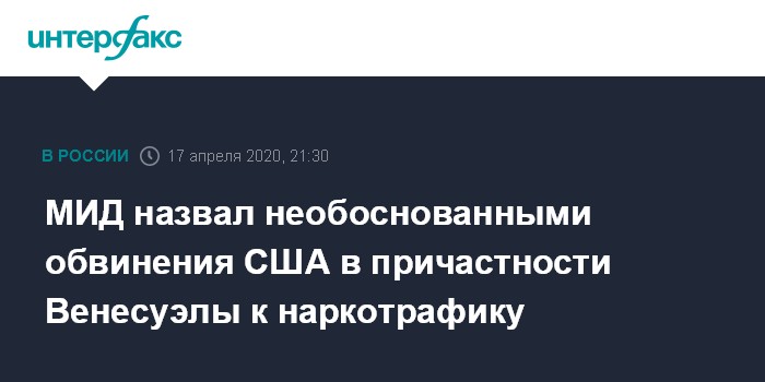 Москва. 17 апреля. INTERFAX.RU - Обвинения США в адрес Венесуэлы в причастности Каракаса к наркотрафику вымышлены, заявляют в МИД РФ