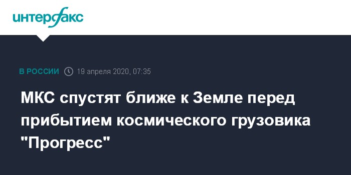 Москва. 19 апреля. INTERFAX.RU - Орбиту Международной космической станции (МКС) снизят на 1,5 километра перед прибытием транспортного грузового корабля "Прогресс МС-14", сообщил "Роскосмос".