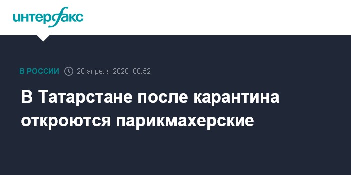 Москва. 20 апреля. INTERFAX.RU - Правительство Татарстана разрешило с 20 апреля возобновить работу парикмахерским, следует из постановления на региональном официальном портале правовой информации.
