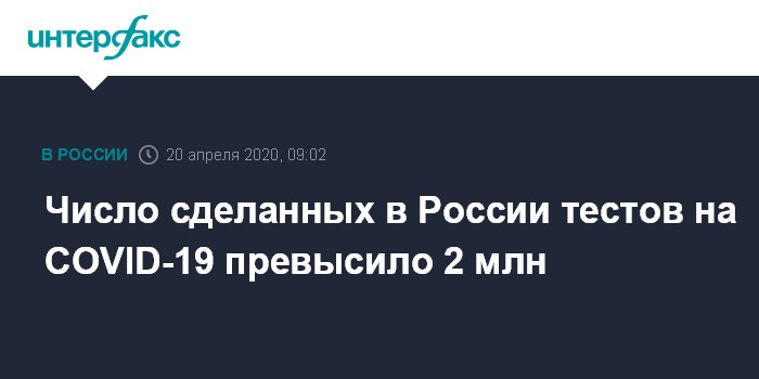 Москва. 20 апреля. INTERFAX.RU - Более 2 млн лабораторных исследований на новую коронавирусную инфекцию проведено в России, сообщает Роспотребнадзор.