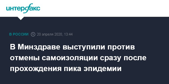 Ранее пресс-секретарь президента РФ Дмитрий Песков заявил, что Россия пока еще не вышла на плато эпидемии коронавируса. "Соответственно, на следующей неделе (с 20 по 26 апреля - ИФ) тоже есть надежда, что какие-то первые признаки выхода на плато увидим. Наверное, в течение недели какие-то надо будет принимать решения о дальнейшем режиме (самоизоляции - ИФ)", - сказал Песков 19 апреля в интервью программе "Москва. Кремль. Путин".