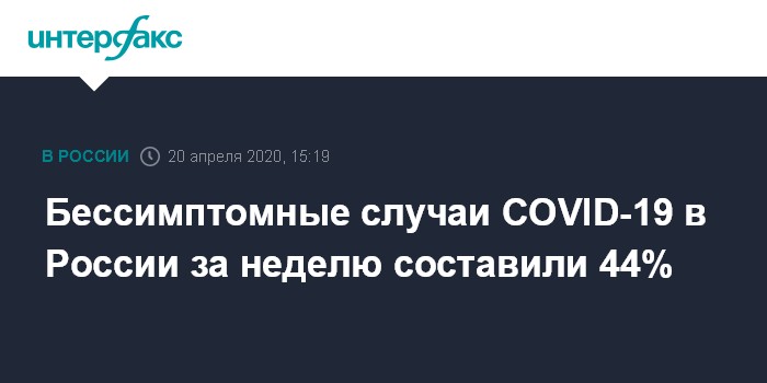 Бессимптомные случаи COVID-19 в России за неделю составили 44%