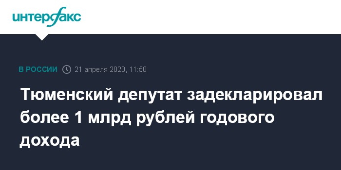 Тюменский депутат задекларировал более 1 млрд рублей годового дохода