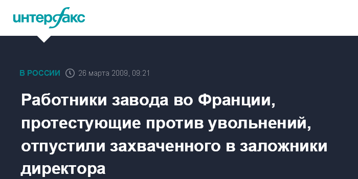 По сообщению интернет-сайта французского издания "Нувель обсерватер", директор завода был выпущен только после подписания соглашения о пересмотре плана увольнений рабочих.