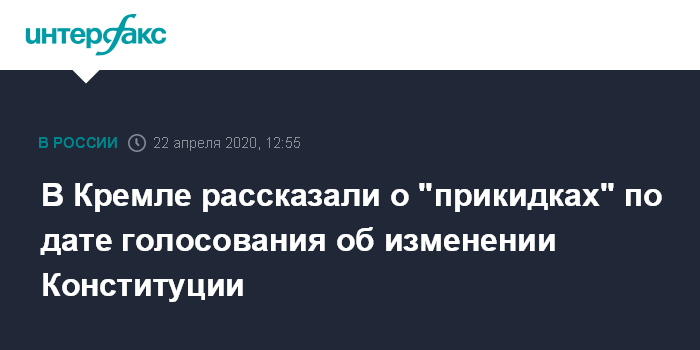 Москва. 22 апреля. INTERFAX.RU - Новая дата голосования по поправкам в Конституцию России не определена, но есть определенные прикидки, заявил пресс-секретарь президента РФ Дмитрий Песков.