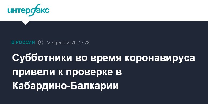 Москва. 22 апреля. INTERFAX.RU - В Кабардино-Балкарии по поручению Генпрокуратуры РФ проверят, обоснованно ли было проведение субботников в условиях пандемии коронавируса, сообщает надзорное ведомство.
