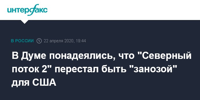 В Думе понадеялись, что "Северный поток 2" перестал быть "занозой" для США