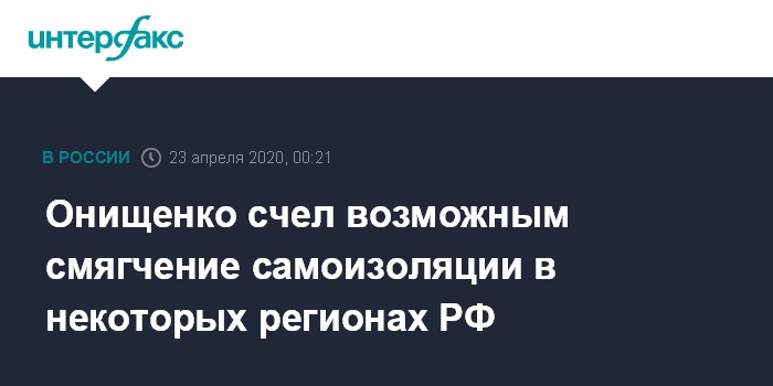 Онищенко счел возможным смягчение самоизоляции в некоторых регионах РФ