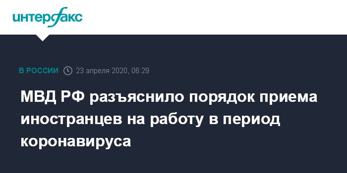 МВД РФ разъяснило порядок приема иностранцев на работу в период коронавируса