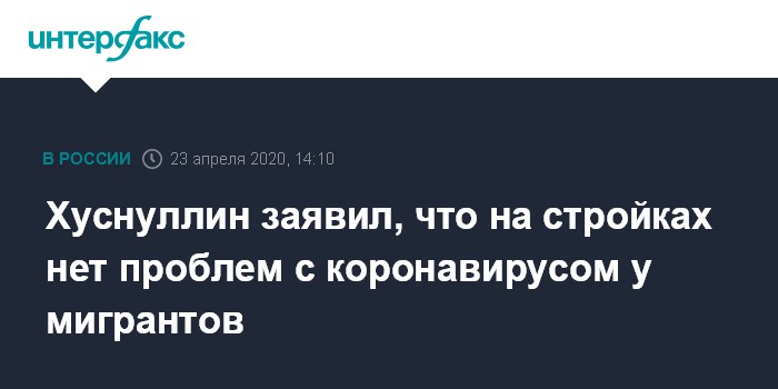 Хуснуллин заявил, что на стройках нет проблем с коронавирусом у мигрантов