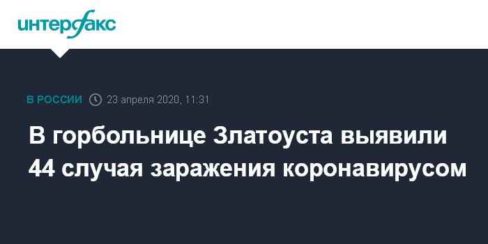 Москва. 23 апреля. INTERFAX.RU - В городской больнице Златоуста выявлен очаг коронварусной инфекции, за минувшие сутки там заразились 44 человека, сообщил губернатор Челябинской области Алексей Текслер. Всего за сутки в регионе число заражений увеличилось на 57.