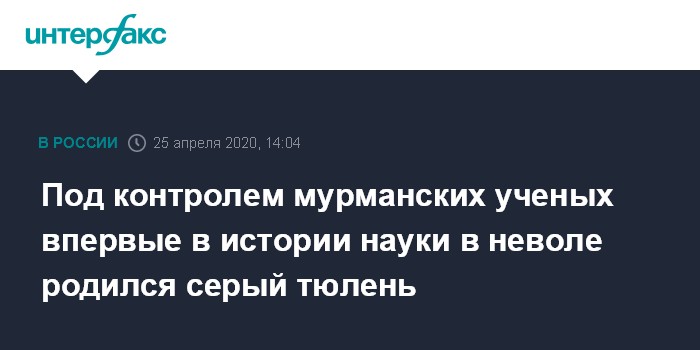 Москва. 25 апреля. INTERFAX.RU - В аквакомплексе лаборатории биотехнических систем Мурманского морского биологического института (ММБИ) в Кольском заливе Баренцева моря впервые в истории науки в условиях неволи появился на свет щенок серого тюленя, сообщили "Интерфаксу" в ММБИ.