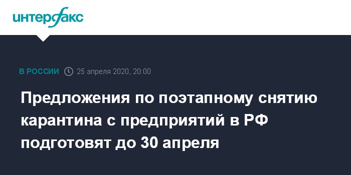 Предложения по поэтапному снятию карантина с предприятий в РФ подготовят до 30 апреля