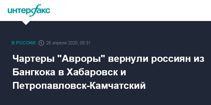 Авиакомпания "Аврора", входящая в Группу "Аэрофлот", 25 и 26 апреля организовала четыре специальных чартерных рейса для вывоза российских граждан из Республики Корея и Королевства Таиланд.