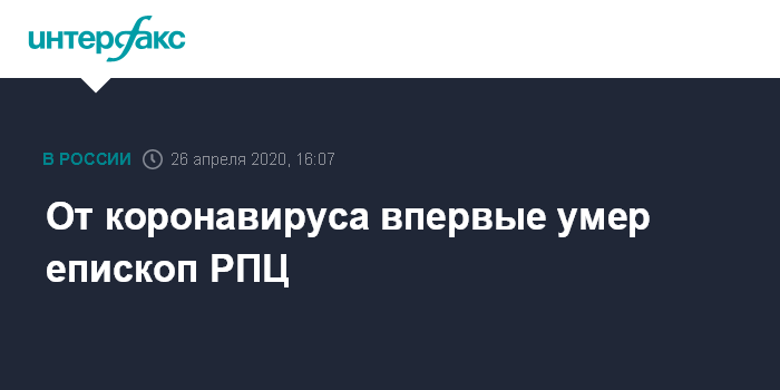 Москва. 26 апреля. INTERFAX.RU - Епископ Железногорский и Льговский Вениамин скончался в воскресенье от коронавируса, сообщает рабочая группа при патриархе Кирилле.