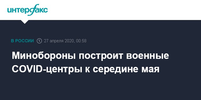 Москва. 27 апреля. INTERFAX.RU - Минобороны России построит многофункциональные медицинские центры в четырех военных округах до 15 мая.