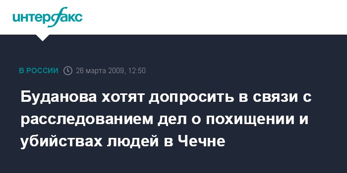 Москва. 26 марта. INTERFAX.RU - СКП РФ планирует допросить бывшего полковника российской армии Юрия Буданова в рамках расследования уголовных дел о похищении и убийстве жителей Чечни.