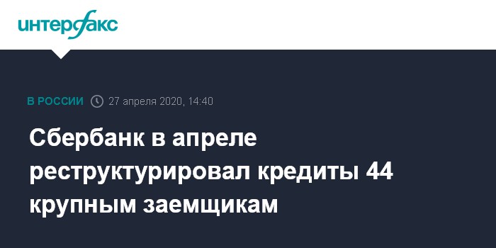 Сбербанк в апреле реструктурировал кредиты 44 крупным заемщикам