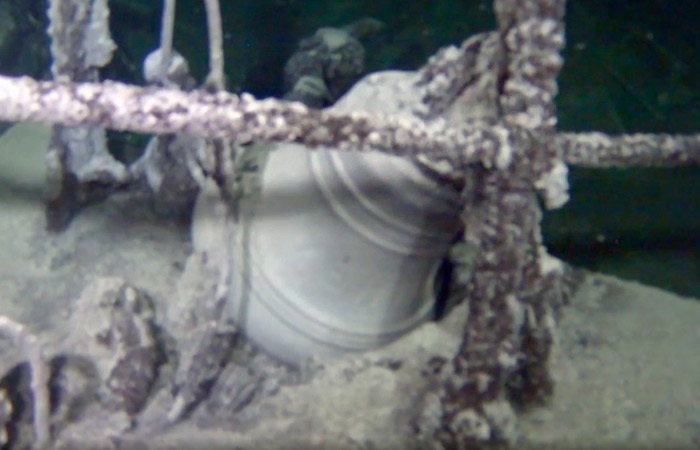 "Для детального обследования объекта, находящегося в 15 морских милях от берега на глубине 1 500 метров, был применен телеуправляемый необитаемый подводный аппарат (ТНПА) отечественного производства серии "РТ", что позволило получить первые видеокадры", - сообщили в РГО.
