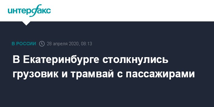 Москва. 28 апреля. INTERFAX.RU - В Екатеринбурге утром во вторник столкнулись трамвай с пассажирами и грузовик DAF, пострадали пассажир трамвая и вагоновожатый, сообщили городском ГИБДД.