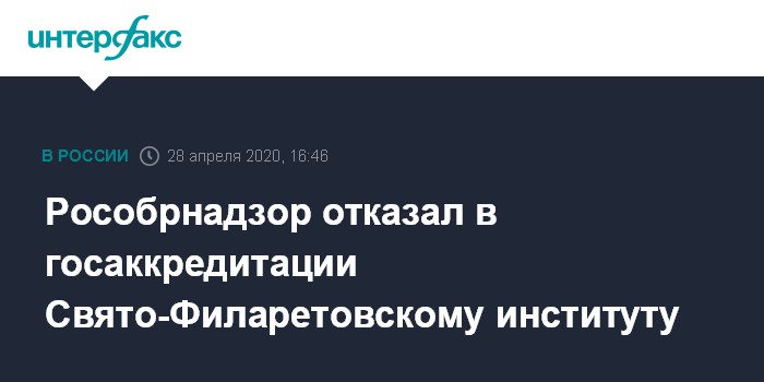 Москва. 28 апреля. INTERFAX.RU - Рособрнадзор отказался дать госаккредитацию образовательным программам по теологии Свято-Филаретовского православно-христианского института, говорится в приказе ведомства.