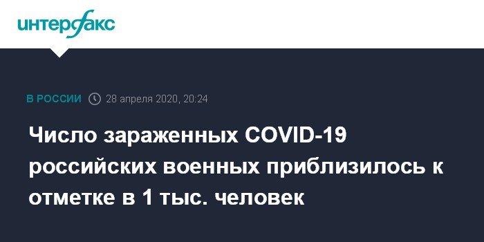 Москва. 28 апреля. INTERFAX.RU - Количество российских военнослужащих с подтвержденным диагнозом коронавирус за сутки увеличилось с 901 до 960, сообщили во вторник в Минобороны РФ.