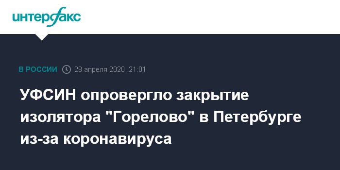 Москва. 28 апреля. INTERFAX.RU - УФСИН по Петербургу и Ленинградской области сообщило, что информация о закрытии СИЗО-6 "Горелово" из-за угрозы массовой вспышки коронавируса является ложной.