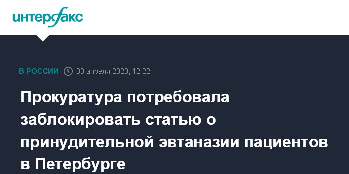 В надзорном ведомстве "Интерфаксу" сообщили, что внимание прокуроров привлекла публикация под названием "Людей принудительно отключают. Реаниматолог об адских условиях работы". В материале со ссылкой на анонимный источник сообщается о случаях принудительной эвтаназии больных коронавирусной инфекцией в петербургских больницах.