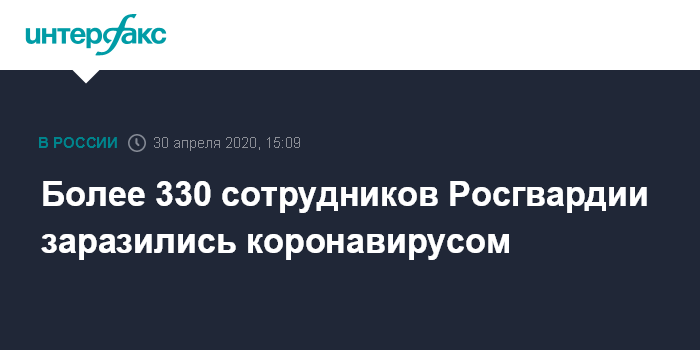 Москва. 30 апреля. INTERFAX.RU - В Росгвардии сообщили о 339 инфицированных COVID-19 сотрудниках, 35 человек - выздоровели.