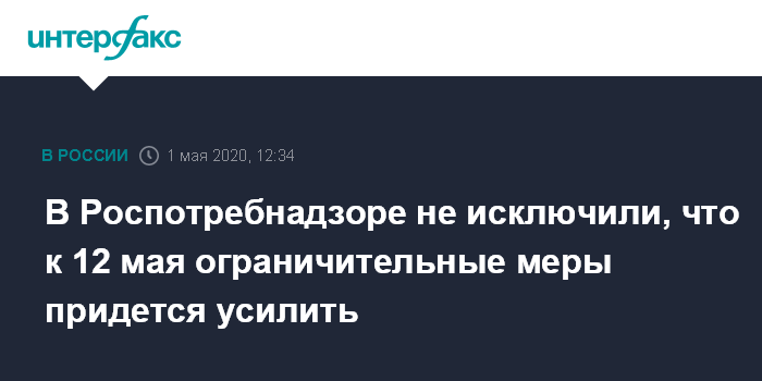 "Если мы сегодня начнём нарушать, то к 12 мая будет очевидно, что нам надо усиливать (режим - ИФ), может быть", - сказала она.