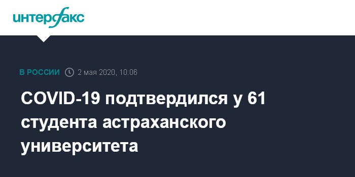 Москва. 2 мая. INTERFAX.RU - Число зараженных новым коронавирусом студентов Астраханского Государственного технического университета (АГТУ) возросло с 5 до 61, сообщает Минздрав региона в субботу.