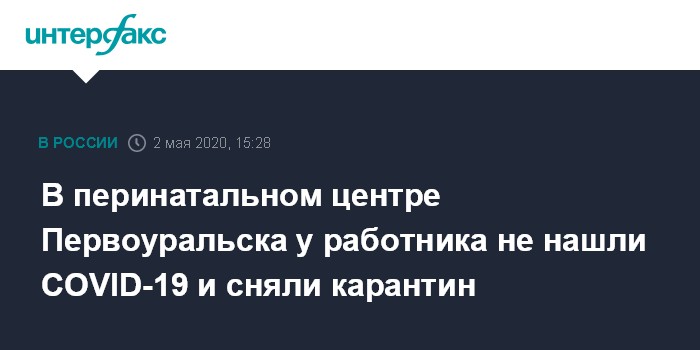 Москва. 2 мая. INTERFAX.RU - Роспотребнадзор по Свердловской области снял карантин, введенный в перинатальном центре Первоуральска, у сотрудника которого при дополнительном обследовании коронавирус не подтвердился, сообщили "Интерфаксу" в оперативном штабе региона.
