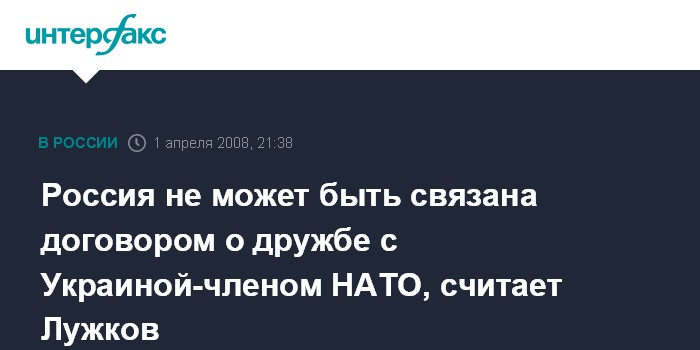 Россия не может быть связана договором о дружбе с Украиной-членом НАТО, считает Лужков