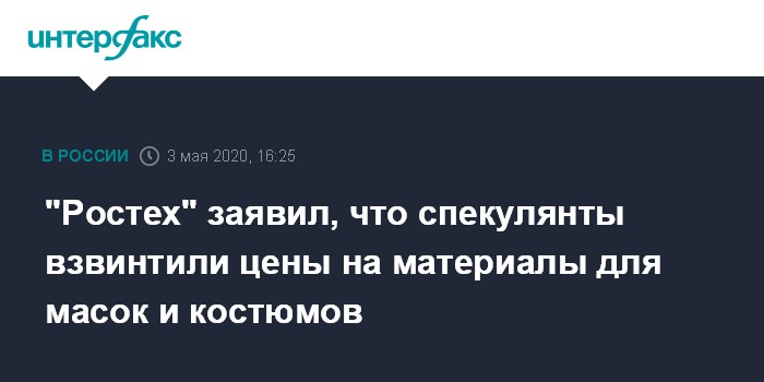 "Ростех" заявил, что спекулянты взвинтили цены на материалы для масок и костюмов