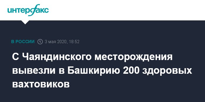 29 апреля первая партия вахтовиков (50 человек) с Чаяндинского нефтегазоконденсатного месторождения, устроивших митинг из-за ситуации с коронавирусом, была доставлена из Якутии в Омск.