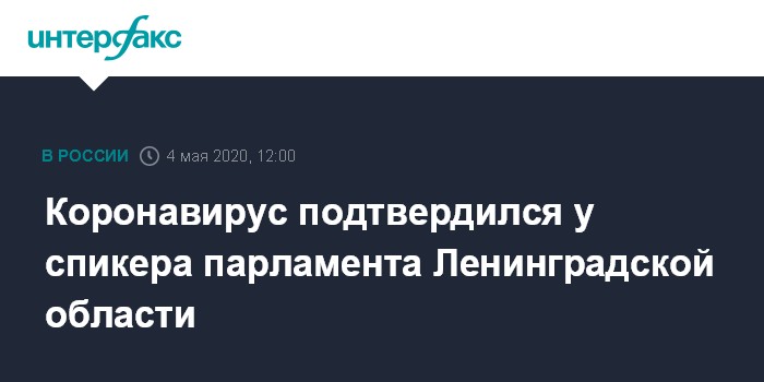 Коронавирус подтвердился у спикера парламента Ленинградской области