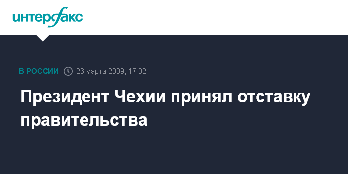 Прага. 26 марта. INTERFAX.RU - Президент Чехии Вацлав Клаус объявил в четверг, что принимает отставку правительства страны, возглавляемого Миреком Тополанеком.