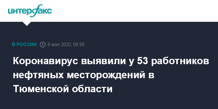 Москва. 6 мая. INTERFAX.RU - На нефтяных месторождениях в Уватском районе Тюменской области заражение коронавирусом подтвердилось у 53 работников, сообщило региональное управление Роспотребнадзора.