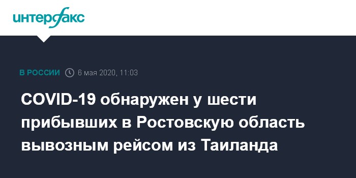 COVID-19 обнаружен у шести прибывших в Ростовскую область вывозным рейсом из Таиланда