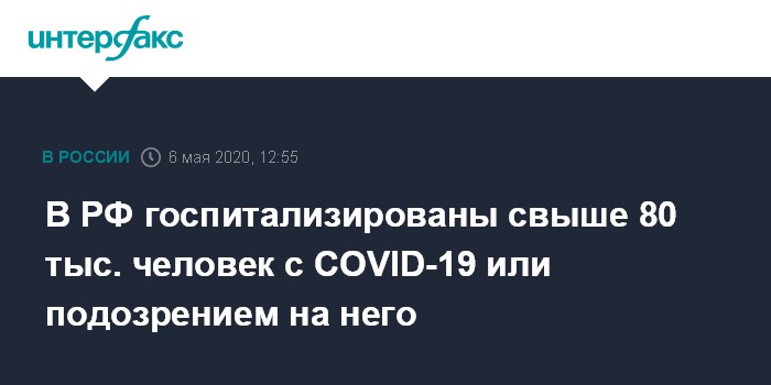 Москва. 6 мая. INTERFAX.RU - Более 80 тысяч пациентов находятся в российских больницах с подозрением на коронавирус и с коронавирусной инфекцией, сообщил в среду глава Минздрава РФ Михаил Мурашко.