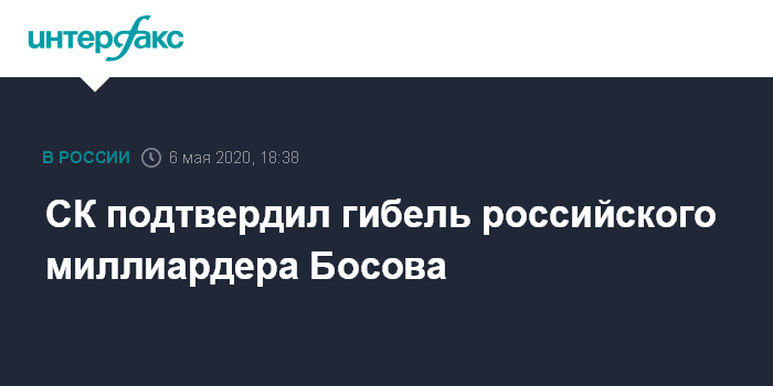 Ранее РБК со ссылкой на двух знакомых Босова сообщил, что он совершил суицид в своем особняке в подмосковном поселке Усово.