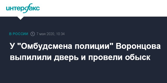 Москва. 7 мая. INTERFAX.RU - В Москве к создателю интернет-проекта "Омбудсмен полиции" Владимиру Воронцову пришли с обыском, его доставили на допрос, сообщила "Правозащита Открытки", которая представляет его интересы. Жена Воронцова сказала правозащитникам, что дверь в его квартиру выпилили.