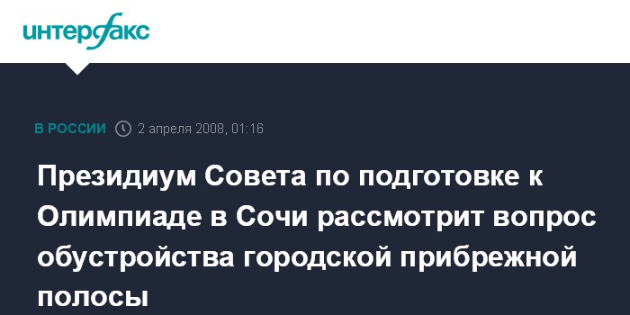 Президиум Совета по подготовке к Олимпиаде в Сочи рассмотрит вопрос обустройства городской прибрежной полосы
