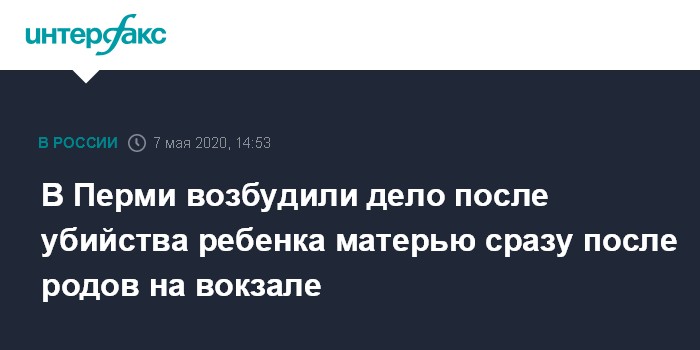 В Перми возбудили дело после убийства ребенка матерью сразу после родов на вокзале