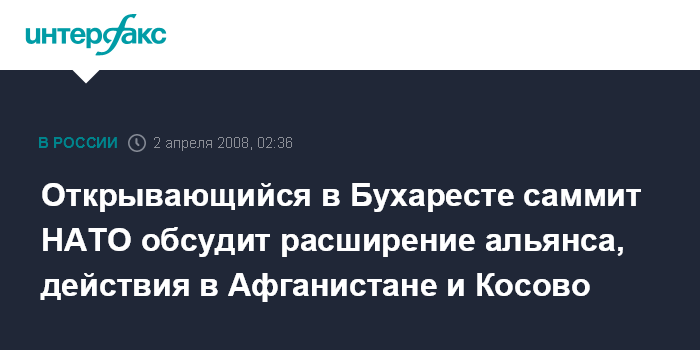 Открывающийся в Бухаресте саммит НАТО обсудит расширение альянса, действия в Афганистане и Косово