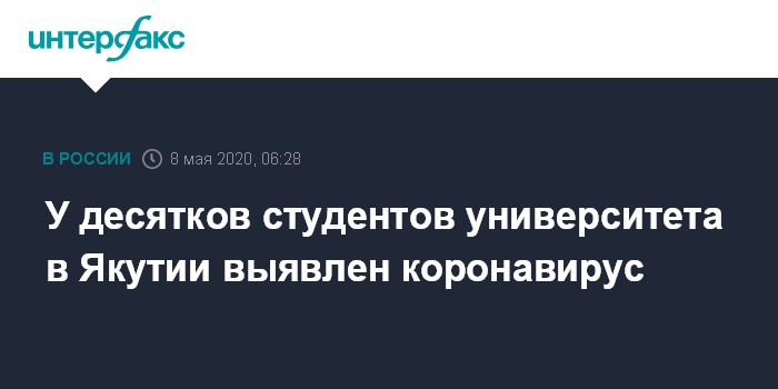 Москва. 8 мая. INTERFAX.RU - За сутки выявлено 34 новых случая заражения коронавирусом среди студентов Северо-Восточного федерального университета (СВФУ), сообщил глава Якутии Айсен Николаев на брифинге в пятницу.